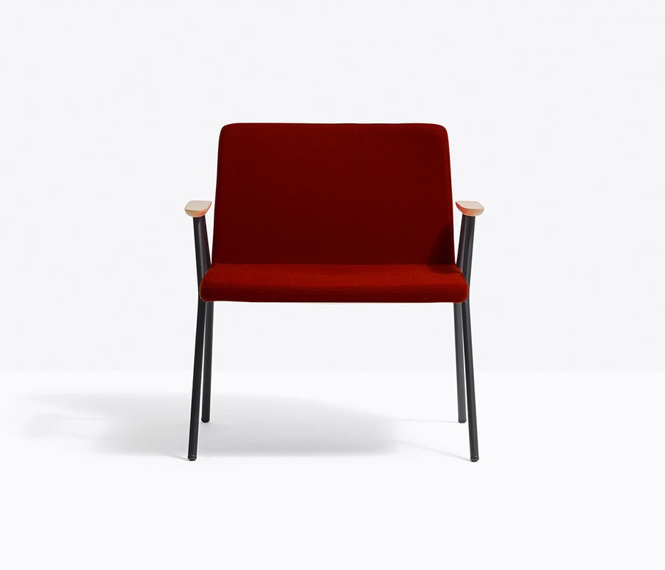 La scocca imbottita della poltrona lounge Osaka Metal di Pedrali, avvolgente e confortevole, è rivestita in tessuto, pelle o ecopelle in un’ampia scelta di colori, per adattarsi ad ogni progetto di interior design.