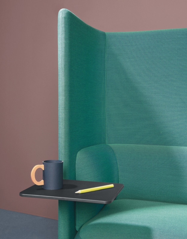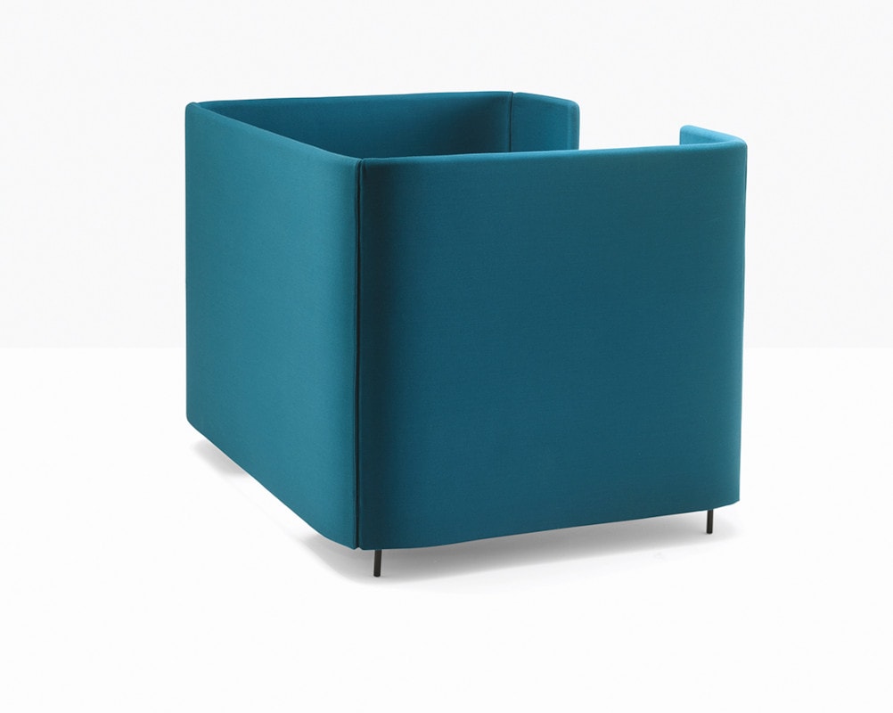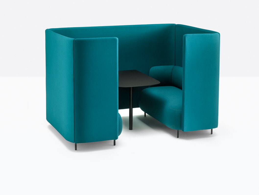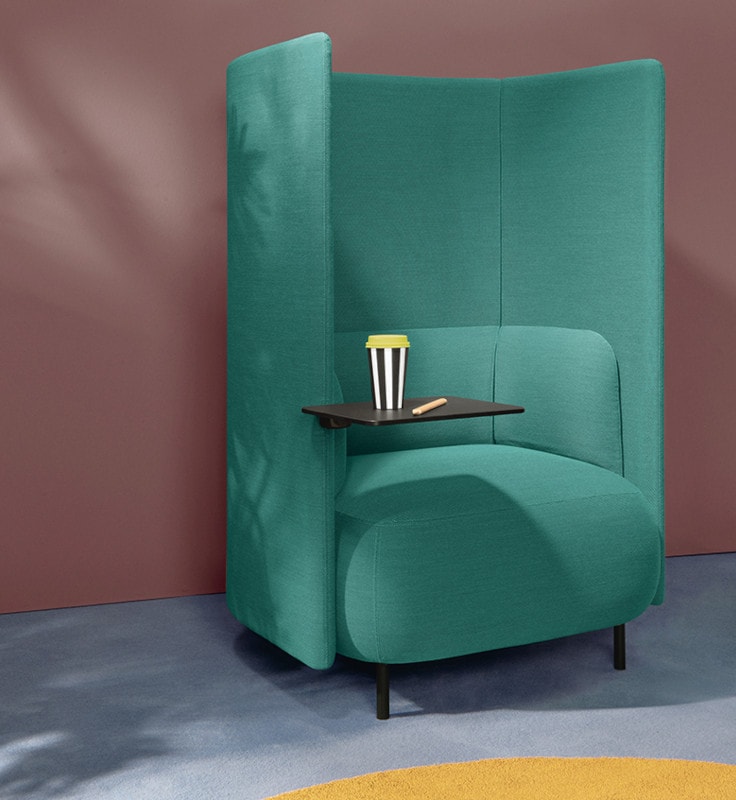 La versione box crea nicchie di privacy a due o quattro posti, ideali per incontri informali, riunioni veloci o momenti di collaborazione e può essere completata da un tavolino penisola integrato al pannello, mentre la poltrona singola è accessoriabile con tavoletta girevole.