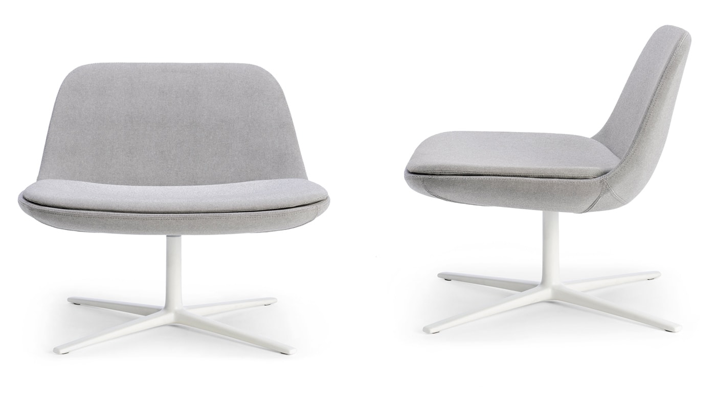 Pure Loop Lounge, poltroncina girevole di Infiniti, ha forme morbide che delineano un design puro ma di grande fascino.