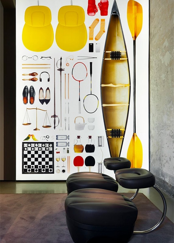Primate sgabello di Zanotta, dalla linea evocativa degli anni ’70, con una prospettiva inedita disattende l’idea che una seduta richieda una postura eretta con i piedi appoggiati a terra.