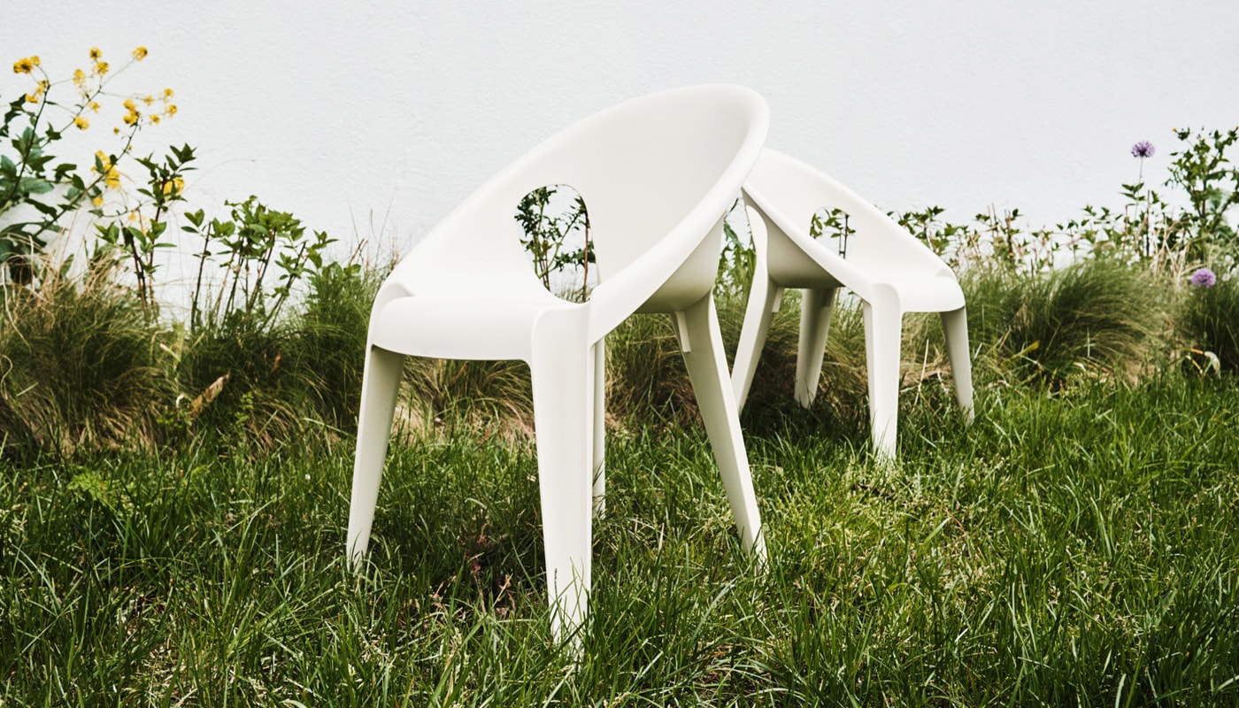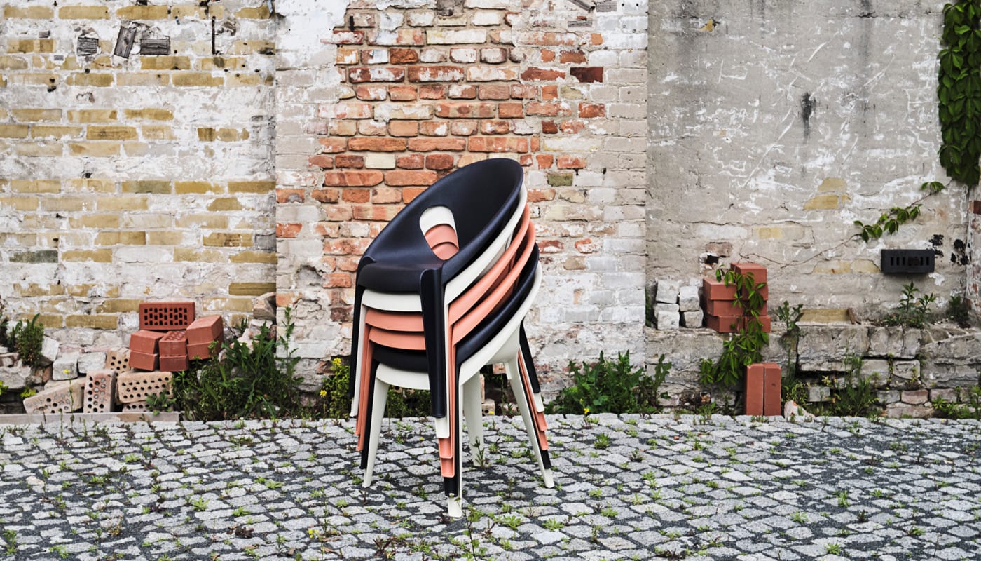Bell Chair, sedia di Magis firmata Konstantin Grcic, interamente riciclata e riciclabile, ha una solida struttura dal design geometrico e confortevole.