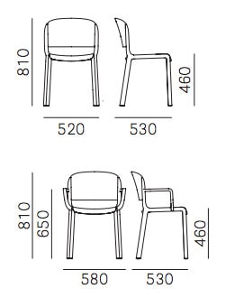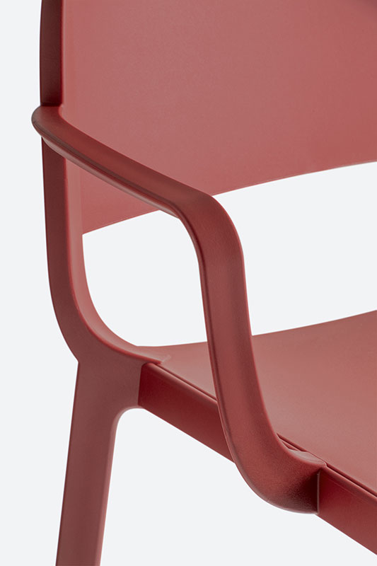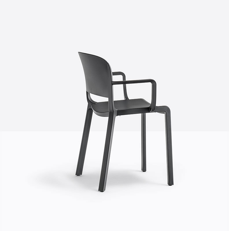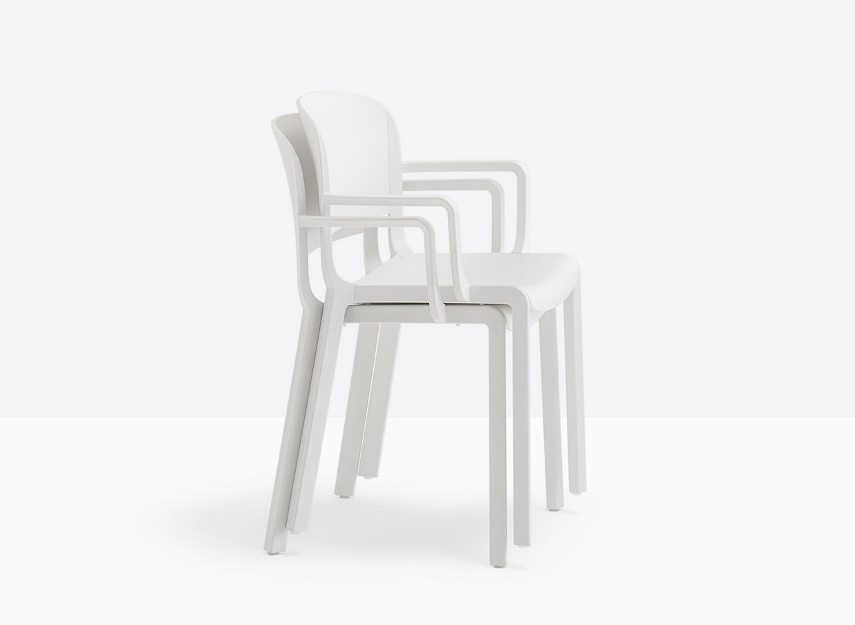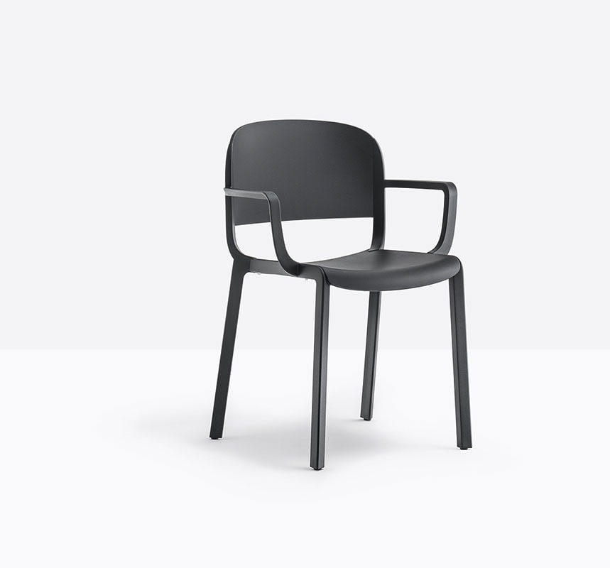 La seduta in polipropilene in diversi colori è proposta con o senza braccioli – rispettivamente Dome 265 e Dome 260.