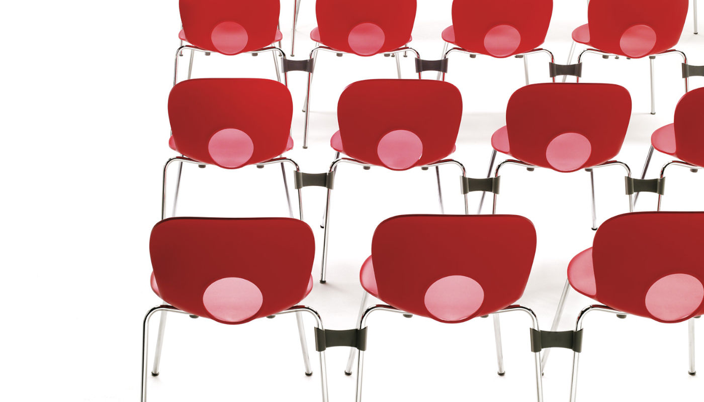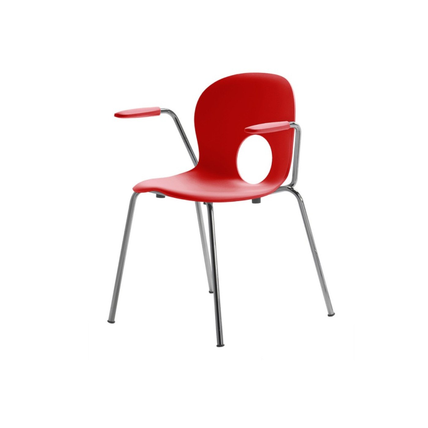 Struttura in acciaio cromato, scocca in polipropilene, impilabile fino a otto pezzi, Olivia è resa disponibile da Rexite in diversi colori, con o senza braccioli.