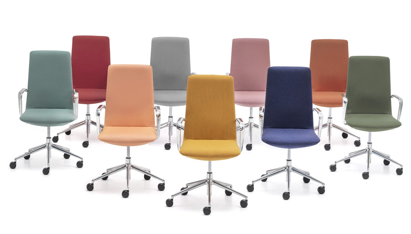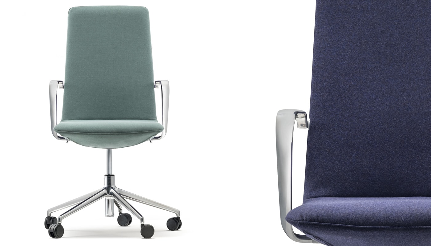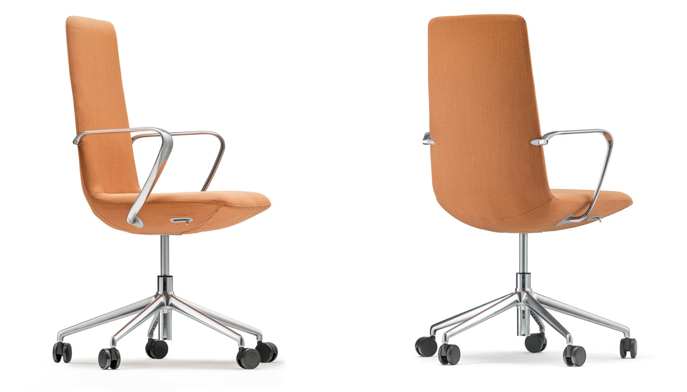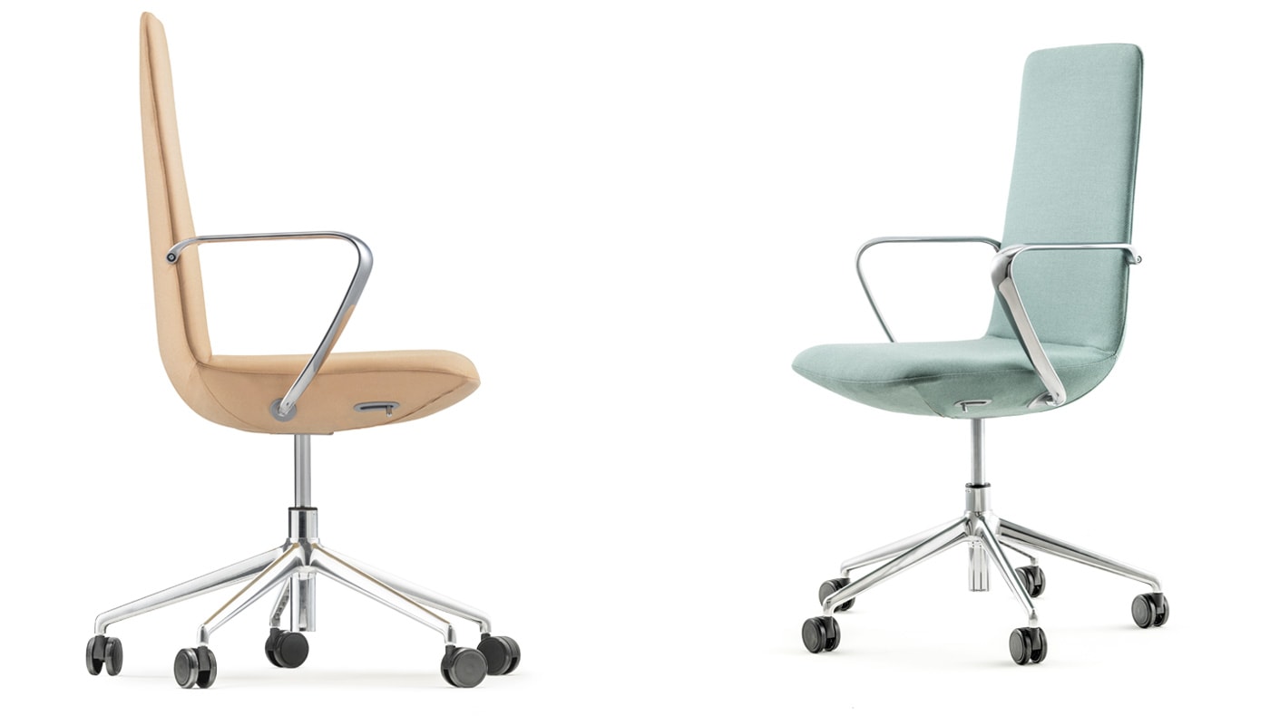 Le sue linee raffinate e pulite sono studiate per arredare con personalità uffici direzionali e home office, oltre a vestire perfettamente un’ampia gamma di rivestimenti: tessuto, microfibra, ecopelle o vera pelle, a scelta nella vasta gamma di finiture Della Chiara.