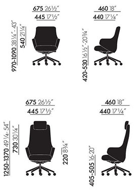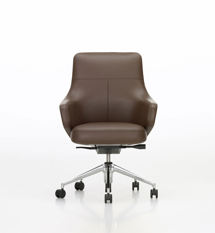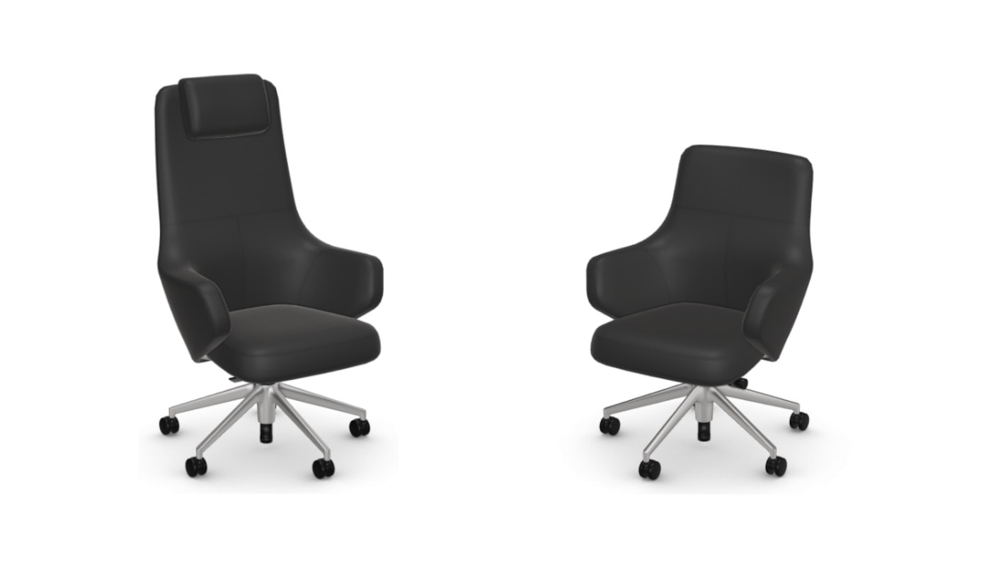 La poltrona ufficio Grand Executive di Vitra, disegnata nel 2014 da Antonio Citterio, riveste di eleganza la funzionalità di una moderna sedia da ufficio.