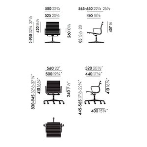EA 117 e EA 118, sono poltrone ufficio girevoli appartenenti alla serie Aluminium Chairs, il più famoso e rappresentativo fra i lavori di Charles e Ray Eames.