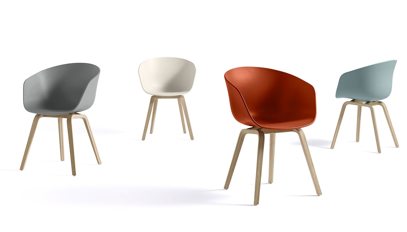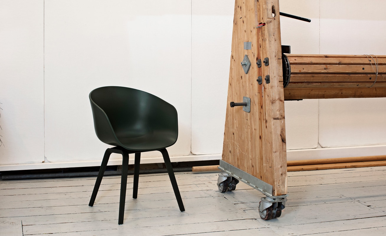 About A Chair AAC22, poltroncina del brand danese Hay, propone una seduta elegante nella sua semplicità funzionale, e confortevole nella avvolgente scocca in polipropilene proposta in diversi colori.