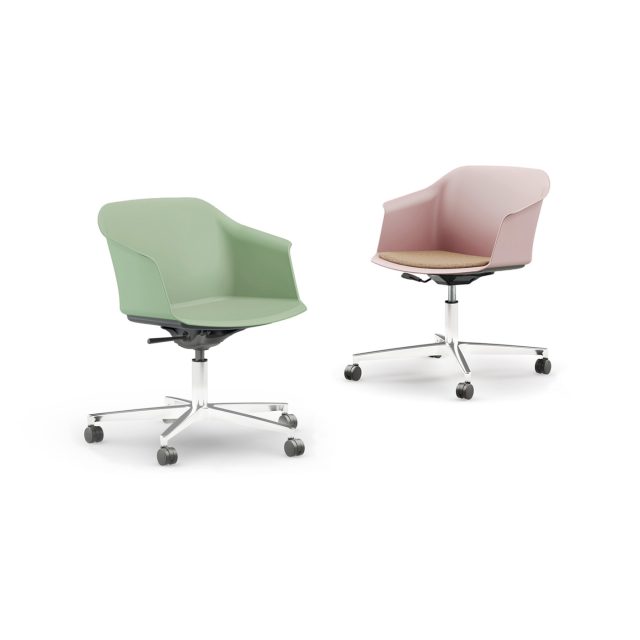 La seduta girevole Aurora è disponibile in tre modelli e una vasta scelta di finiture.