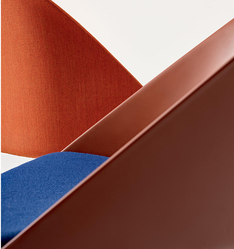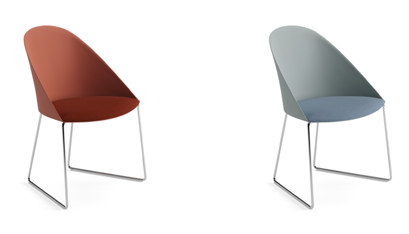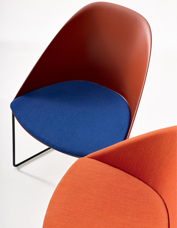 La scocca in polipropilene è disponibile in diversi colori e può essere rivestita in tessuto.