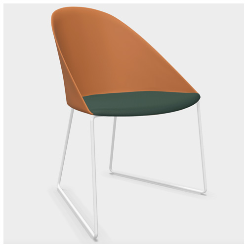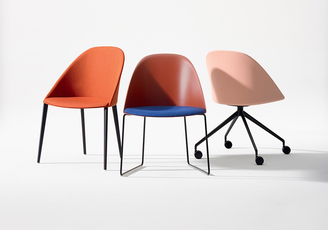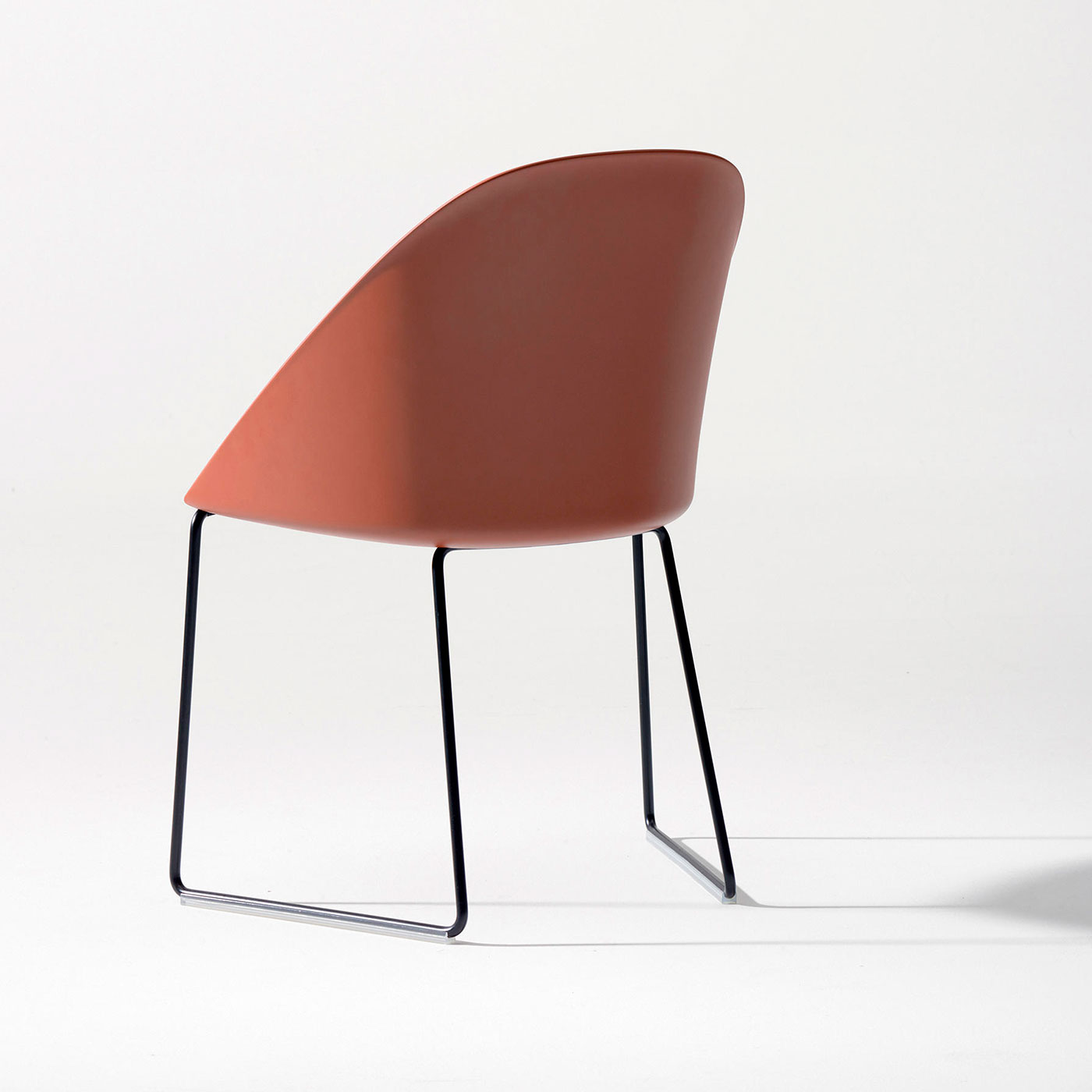 Una sedia dallo stile contemporaneo, dalla forma aerodinamica e avvolgente, esaltata dalla leggerezza delle linee della base, disponibile in tre diverse varianti: con quattro gambe in legno o in metallo o a slitta La scocca realizzata in polipropilene può contenere un cuscino o essere interamente rivestita di tessuto.