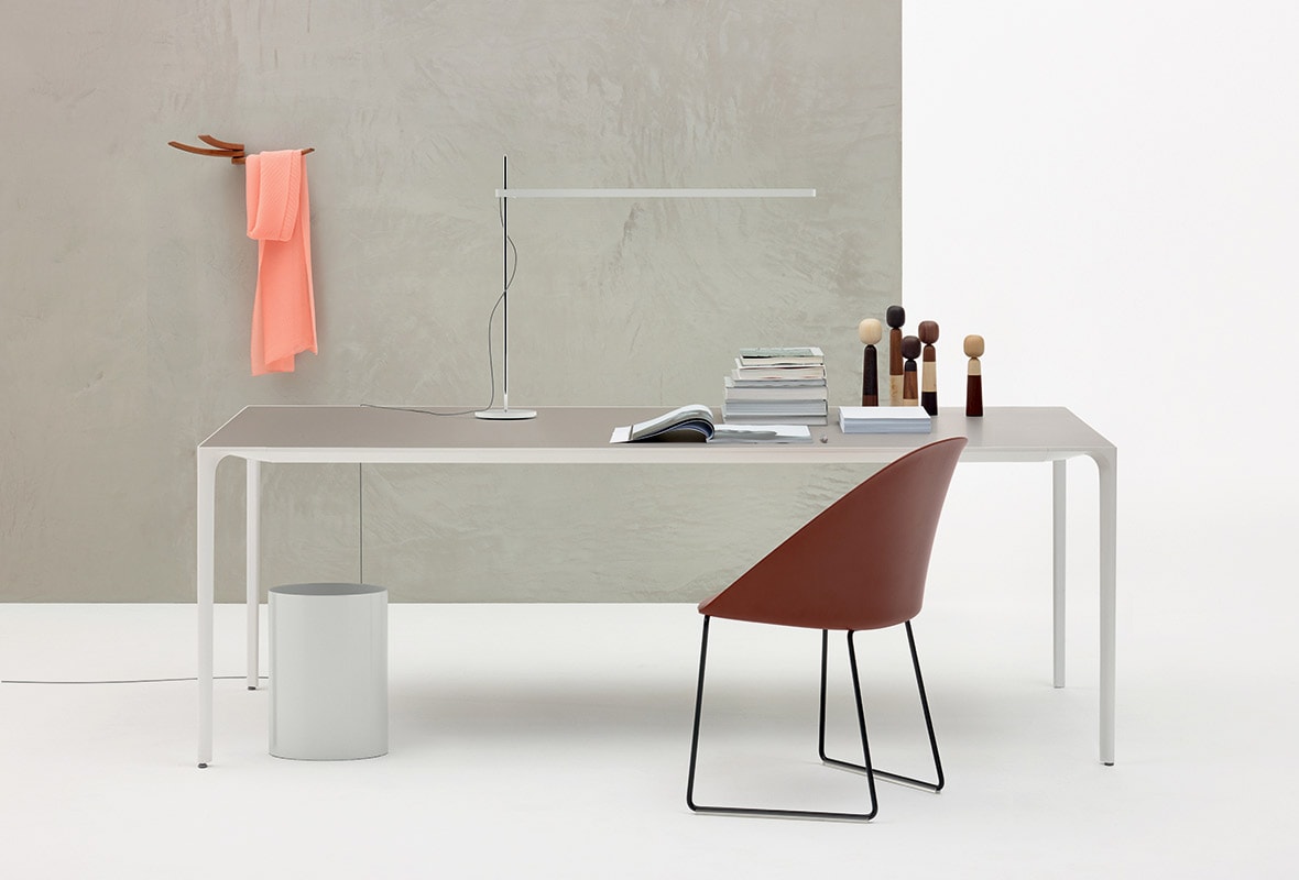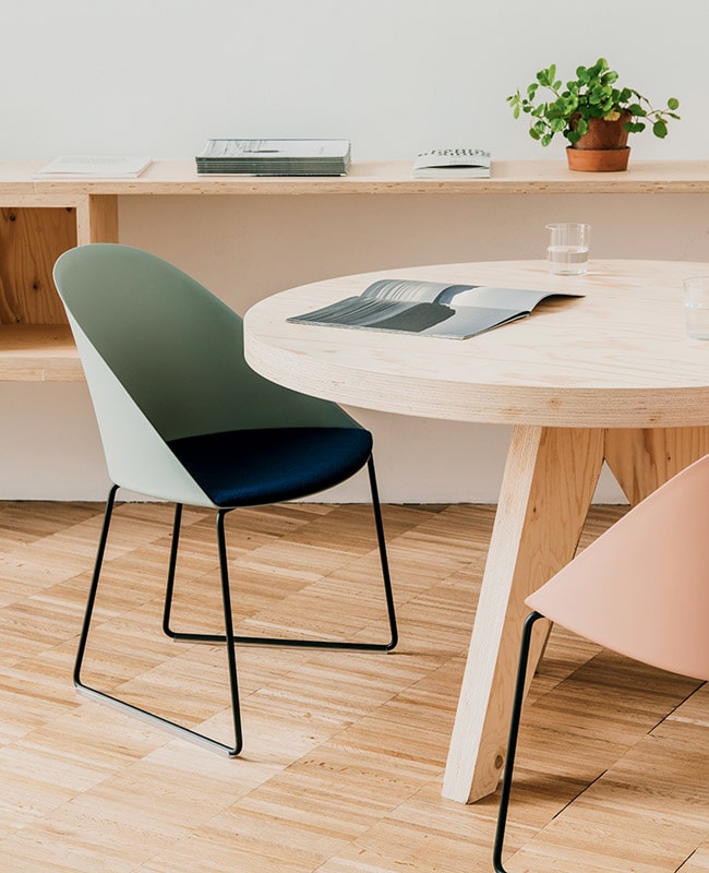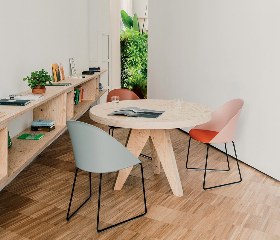 Ideata dallo studio Lievore Altherr, Cila vanta un design fluido e accogliente, che coniuga semplicità e raffinatezza. La base può essere a slitta o a quattro gambe, in acciaio oppure in legno.