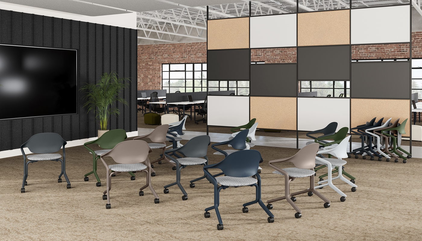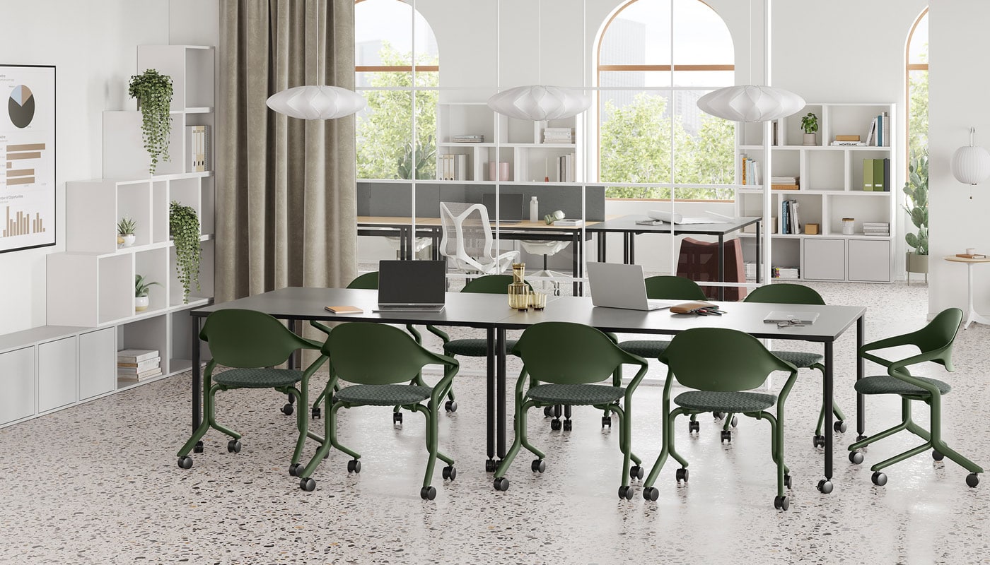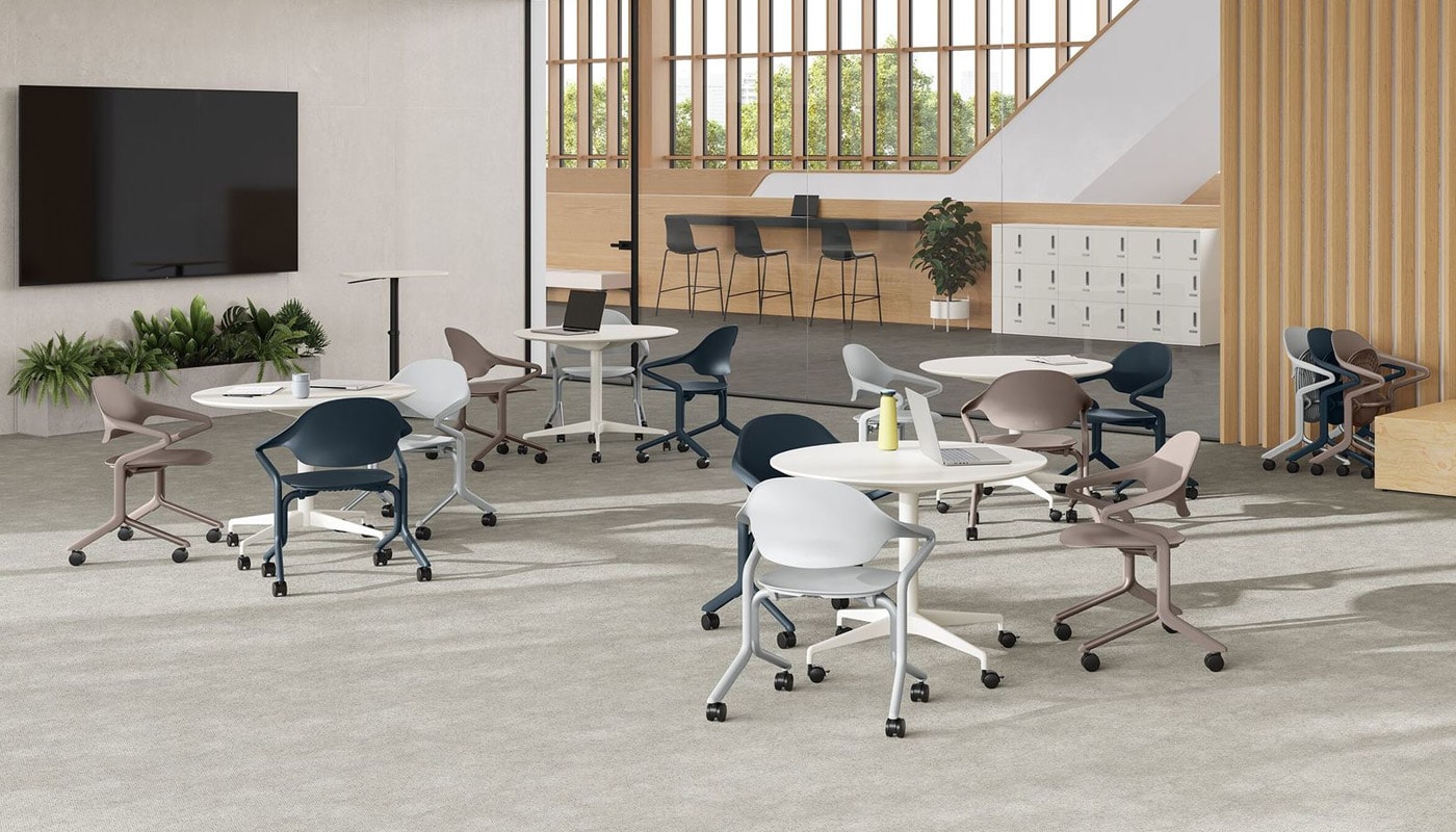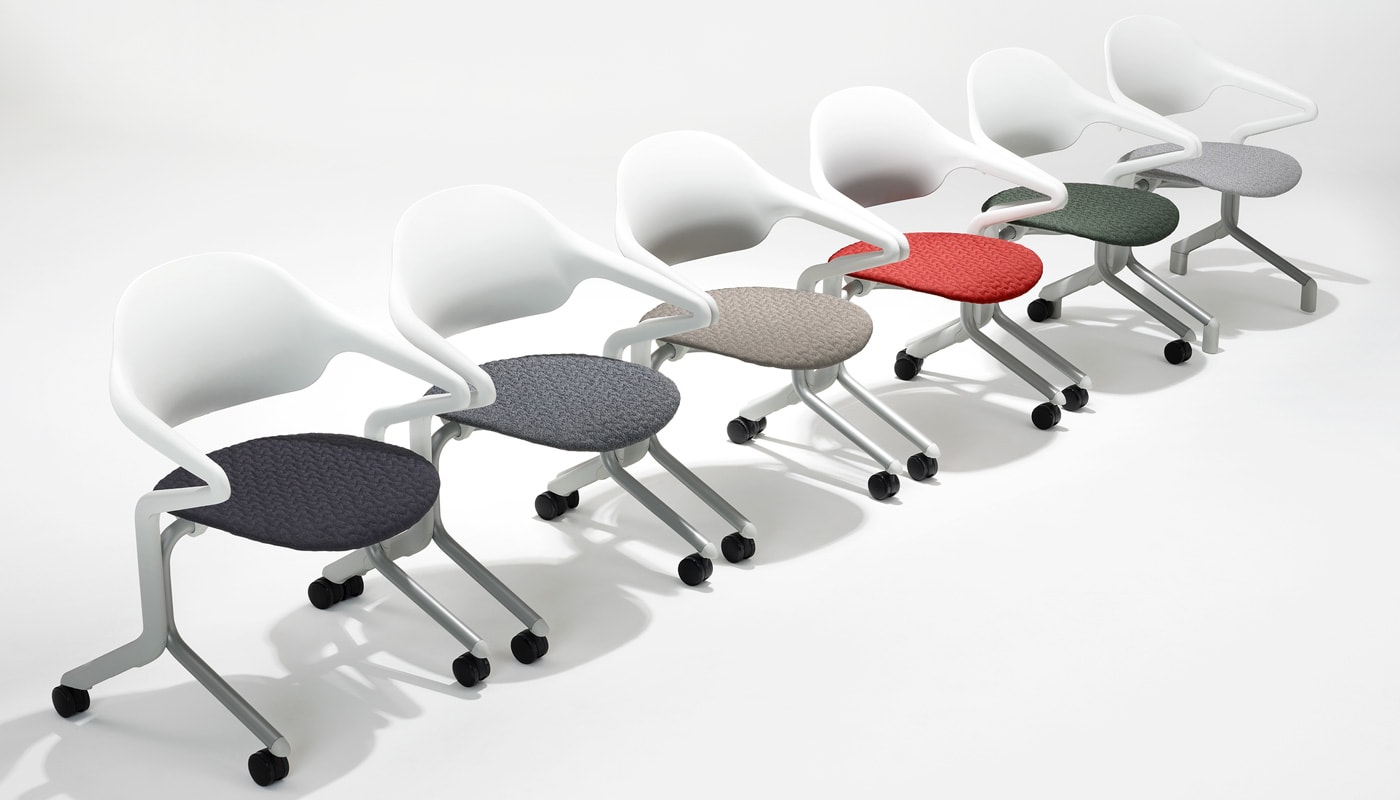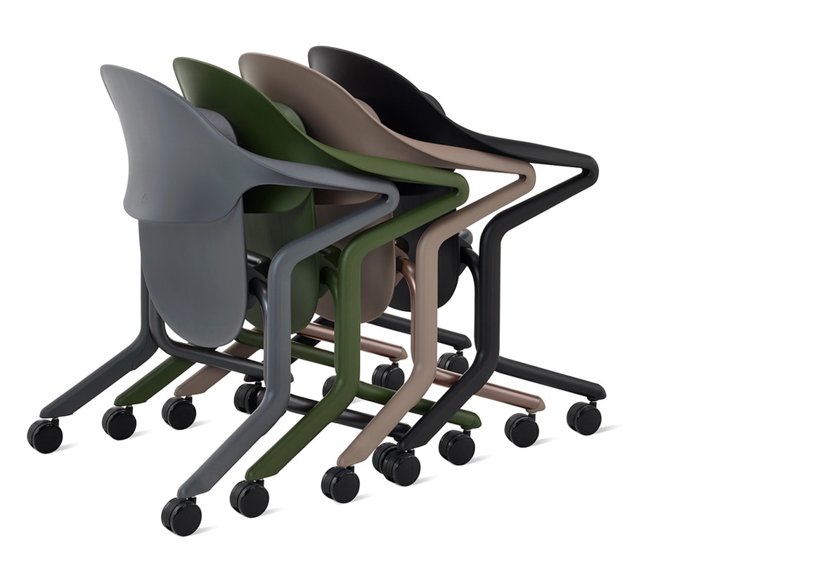 Fuld Nesting Chair, del pluripremiato designer tedesco Stefan Diez, è la prima sedia salvaspazio impilabile orizzontalmente realizzata dal brand Herman Miller.