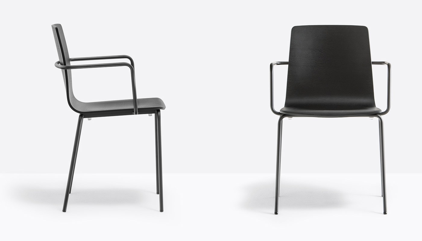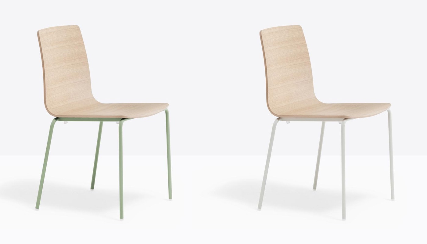 Linee essenziali e design pulito definiscono Inga Plywood, la sedia firmata Pedrali.