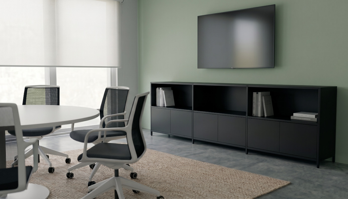 Disponibile con una base a ruote o con piedini fissi, presenta uno schienale flessibile e traspirante in rete nera che assicura un comfort ottimale durante lunghe sedute.
