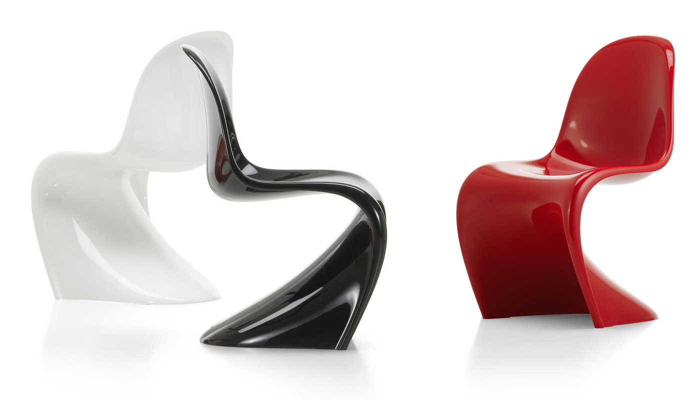 Il modello Panton Chair Classic, in poliuretano, ha finitura laccata lucida, mentre Panton Chair in polipropilene è opaca ed è adatta anche per esterni.