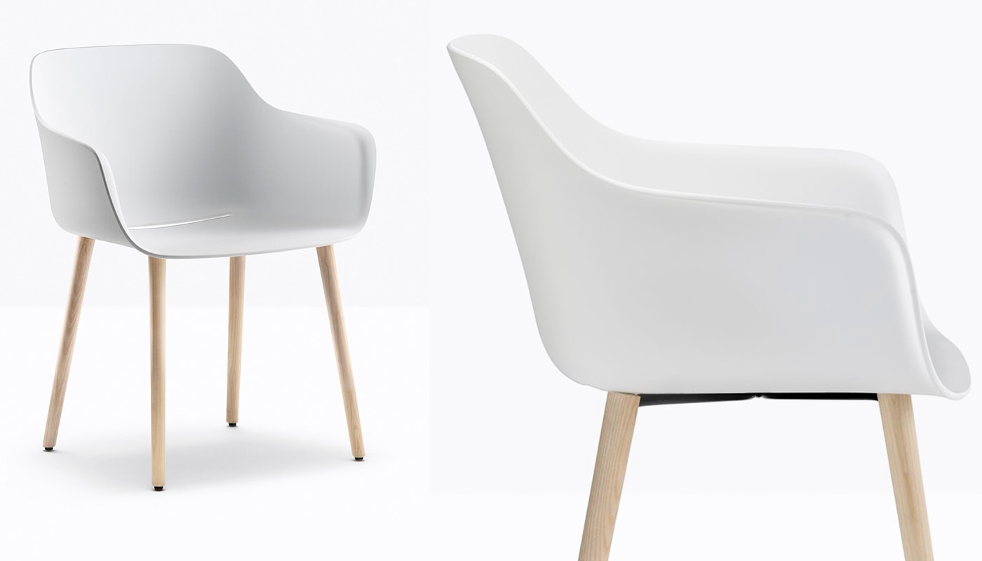 La scocca in polipropilene, dalle linee armoniose, avvolge chi la utilizza offrendo un senso di accoglienza immediata, mentre la scelta tra gambe in acciaio o in massello di frassino consente di adattarla con versatilità a diversi contesti stilistici, dal più contemporaneo al più caldo e naturale.