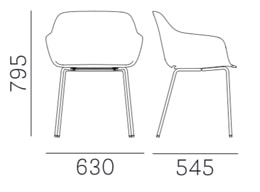 Proponiamo la sedia Babila XL 2734 con gambe in acciaio e Babila XL 2754 con gambe in legno.