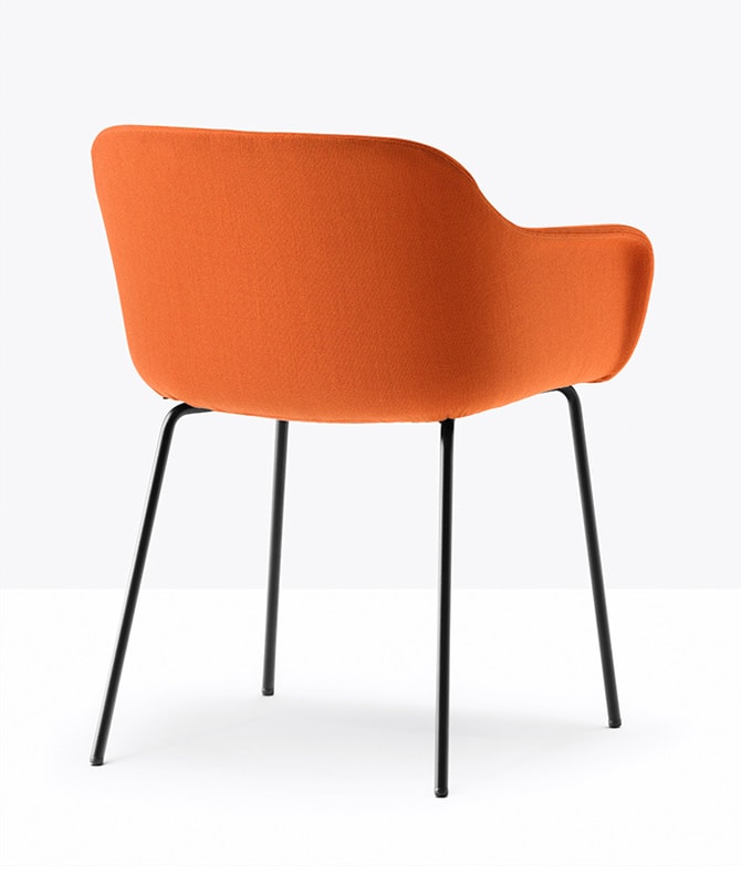 La possibilità di aggiungere il sedile rivestito sfoderabile amplia ulteriormente le opzioni di personalizzazione e versatilità d’uso della poltroncina all’interno di progetti contract o residenziali.