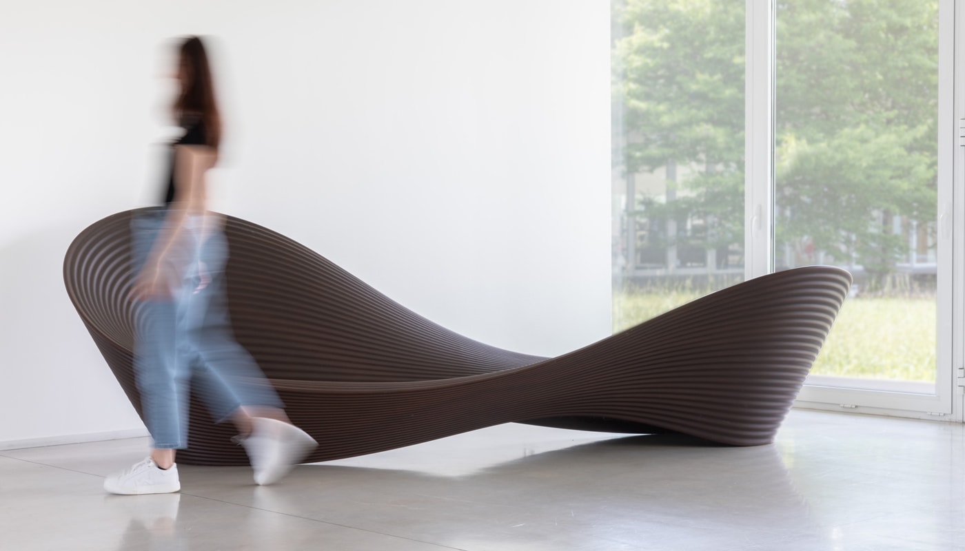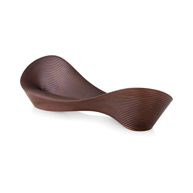 Al confine tra scultura e design, la panca Folly, creata da Ron Arad per Magis, è caratterizzata da forme semplici e linee morbide continue.
