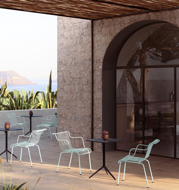 La poltroncina impilabile per esterni South di Magis, si rivela la scelta ideale per chi ricerca un complemento d’arredo elegante e di alta qualità.