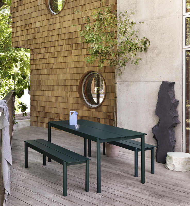 Progettata da Thomas Bentzen, celebre per la sua estetica razionale e funzionale, la panca Linear Steel Bench di muuto rappresenta un perfetto equilibrio tra materiali duraturi e sofisticato design scandinavo.