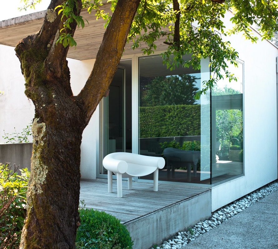 Vincitrice del German Design Award 2016 nella categoria Gardening and Outdoor Living, questa poltroncina bassa e scultorea trasforma ogni ambiente in uno spazio accogliente, ironico e di grande personalità.