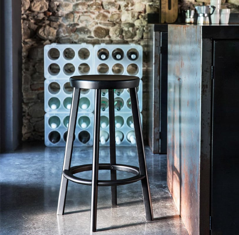 Uno sgabello semplice e puro, che non accentra l’attenzione ma valorizza l’ambiente con la sua forma perfetta e stabile.