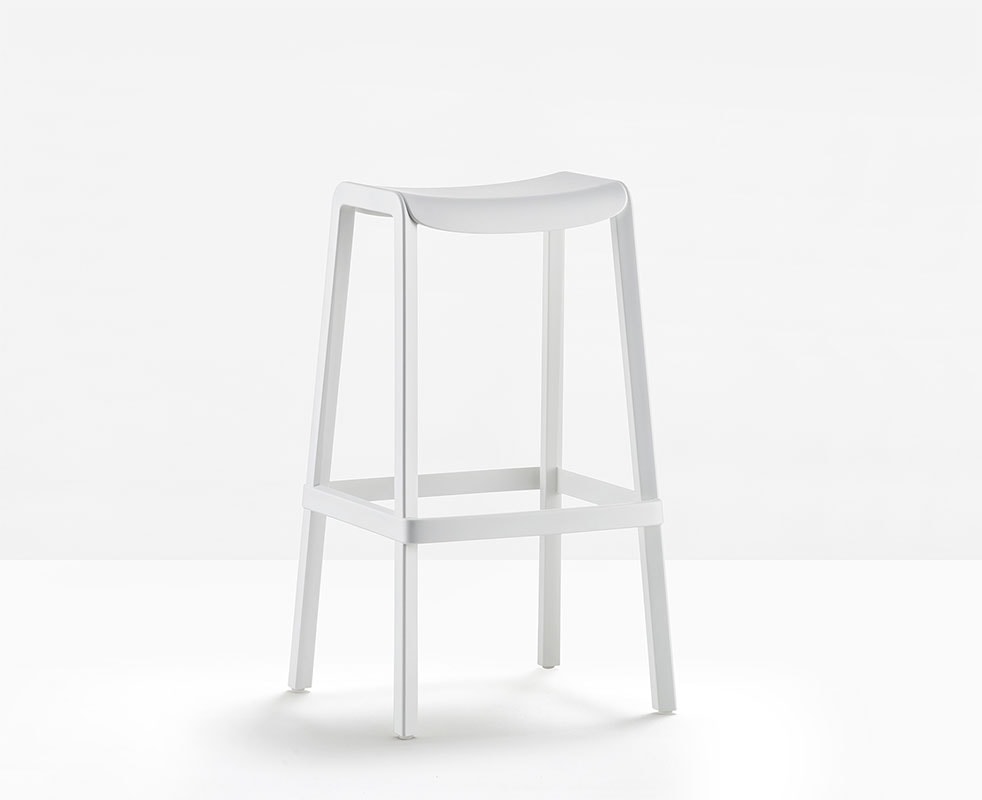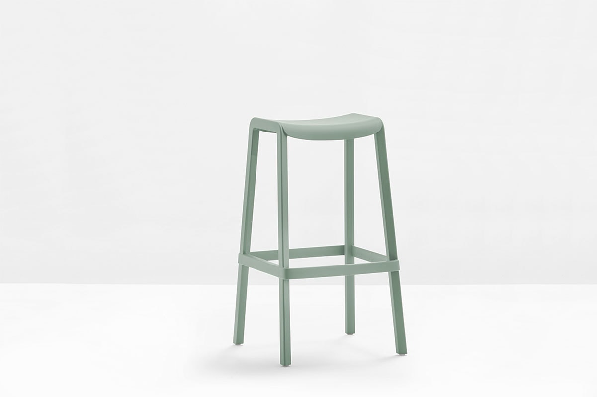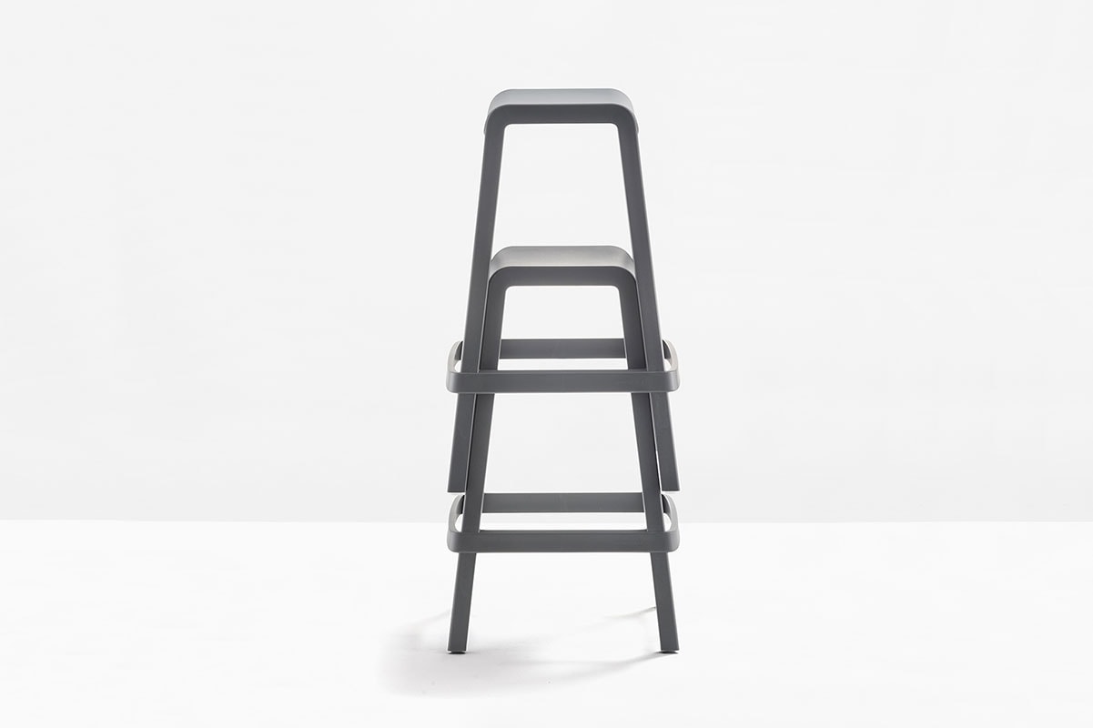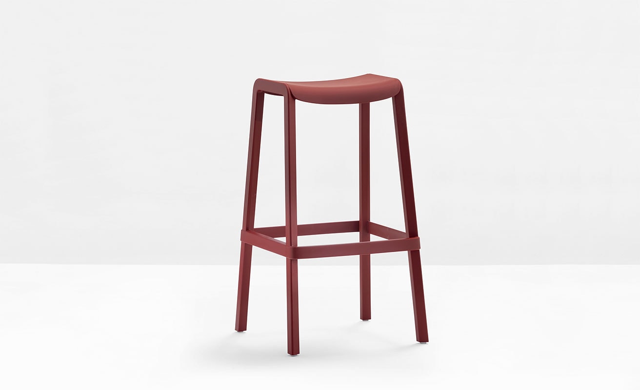 Lo sgabello Dome di Pedrali, realizzato in polipropilene monoscocca tramite tecnologia gas air moulding, garantisce resistenza, leggerezza e una finitura impeccabile.