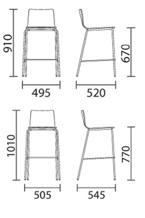 Lo sgabello Inga è proposto in due altezze: H.91 cm e H.101 cm.