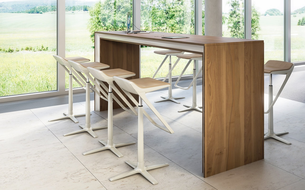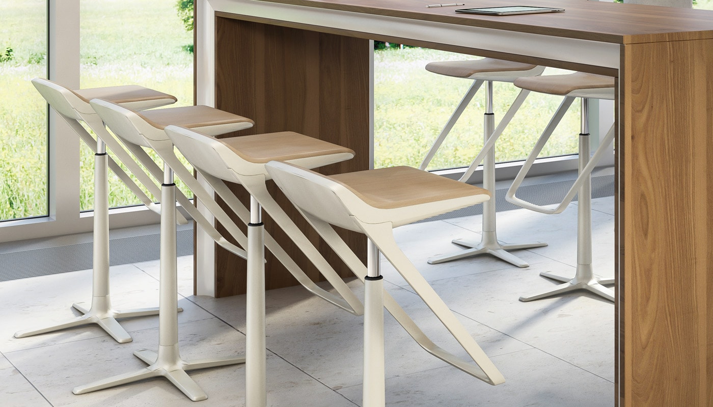 KINETICis5 710K, sgabello bar di Interstuhl, essenziale e logico, si propone come seduta dinamica in ambienti relax, a casa e al lavoro. Il sedile, con altezza regolabile, permette agili spostamenti, in linea con le attuali tendenze di gestione degli spazi.