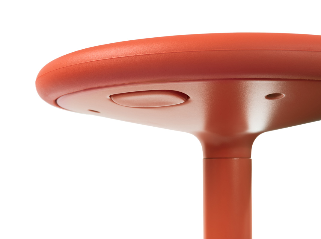 Lo sgabello regolabile in altezza con sedile in poliuretano è proposto in vari colori compatti.
