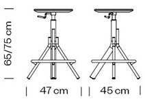 Main sgabello basso, a tre sole gambe, con seduta ad altezza fissa di cm. 49.