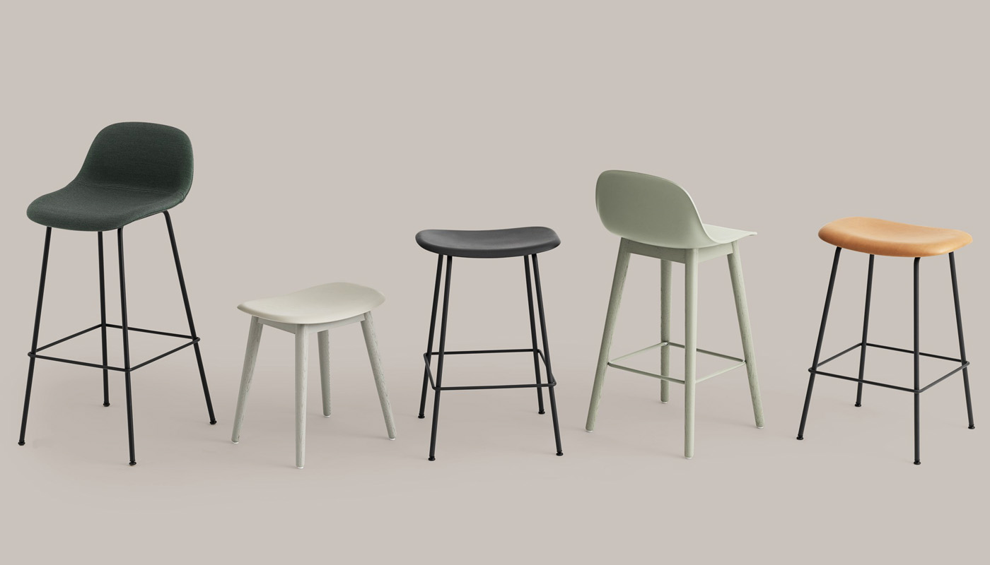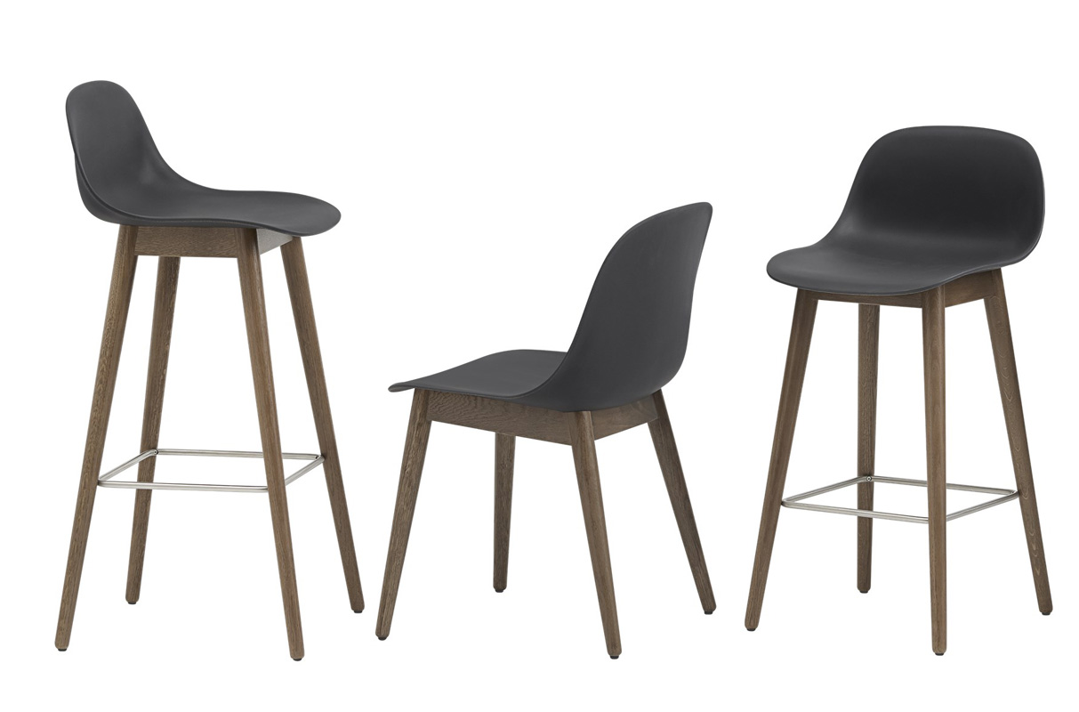 Lo sgabello con gambe legno Fiber Bar stool di muuto, a firma del rinomato studio di design Iskos-Berlino, fa parte dell’omonima collezione di sedie Fiber Chair.