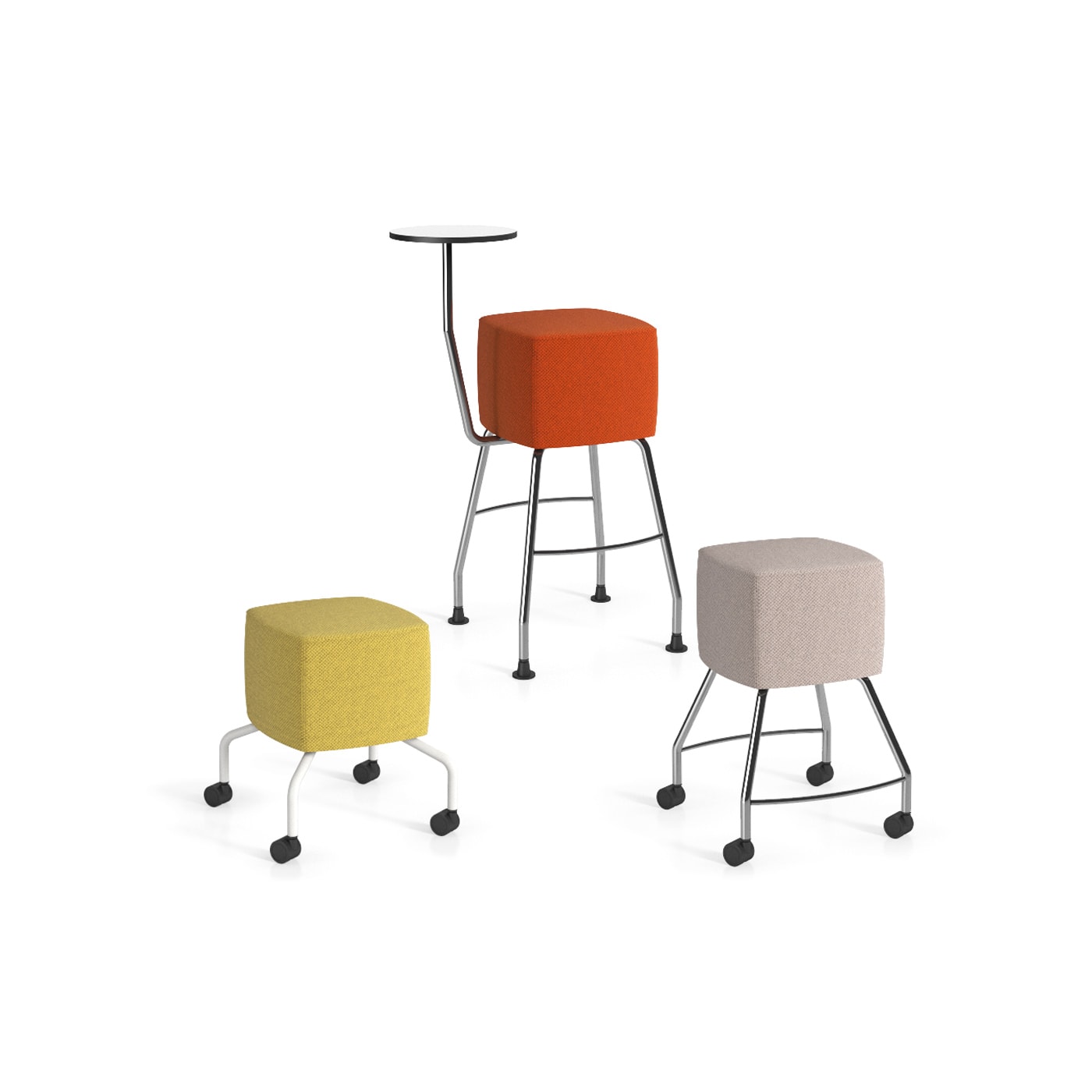 Disponibile in tre differenti altezze e con opzione di montaggio su ruote o piedini, lo sgabello Tommy è disponibile in una vasta gamma di finiture.