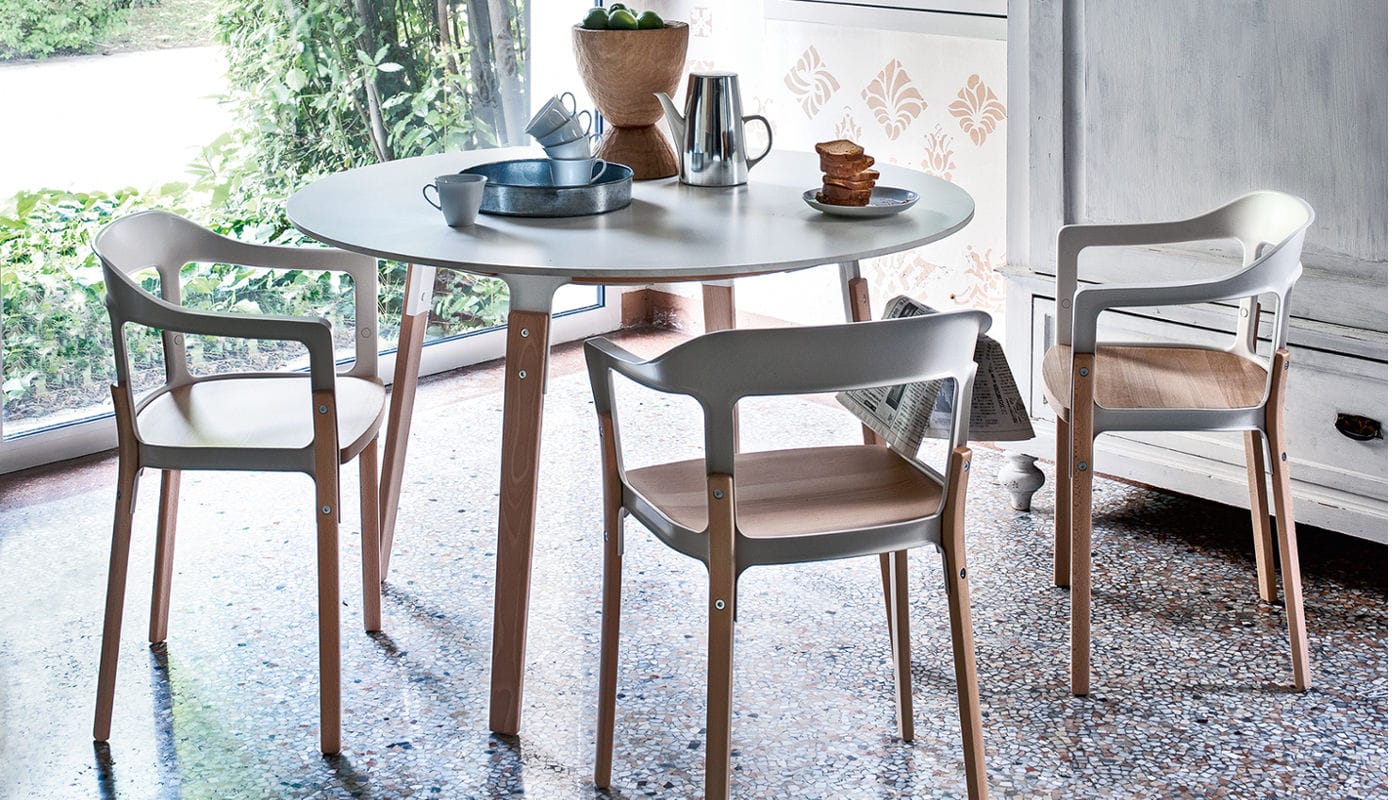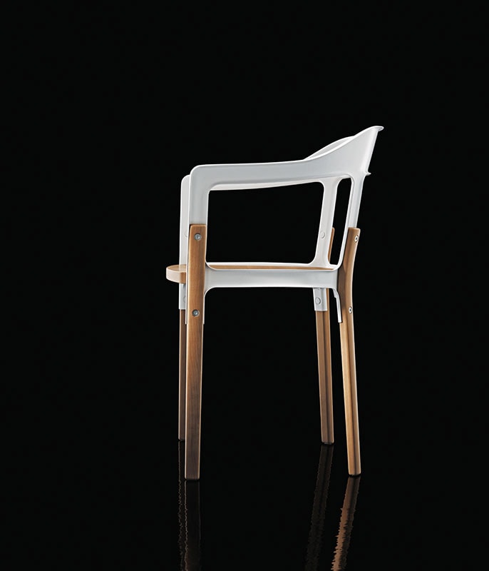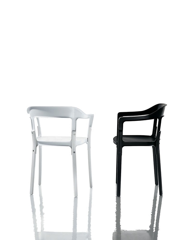 Le forme della sedia Steelwood Chair di Magis sono classiche, ampie nel piano di seduta, accoglienti nell’architettura, snelle nel telaio: il risultato è una sedia con braccioli dotata di un’eleganza antica, che richiama l’allure dei salotti del passato, e di una personalità contemporanea, che la rende adatta anche ai contesti più moderni.