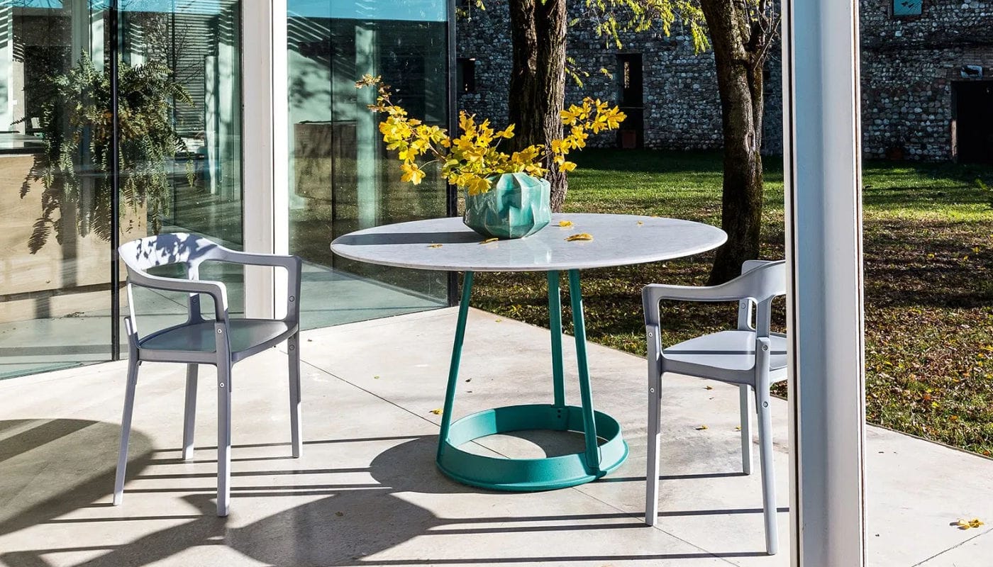 Dall’unione di legno massello e acciaio nasce questa poltroncina signorile firmata per Magis da Ronan e Erwan Bouroullec.