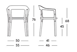 Anche i materiali sono selezionati con cura: faggio per il sedile e le gambe, acciaio verniciato in poliestere per lo schienale.