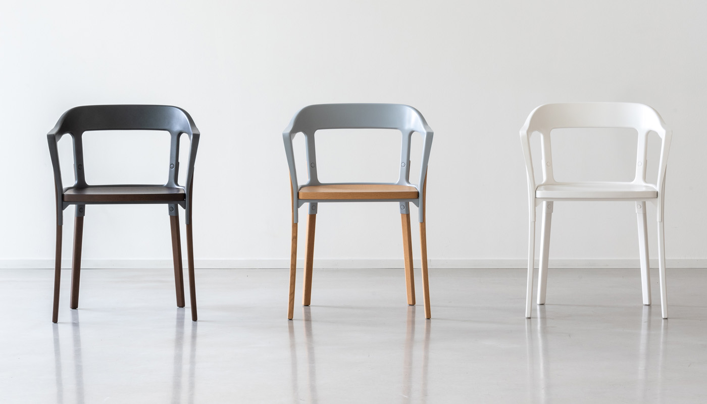 Suggestioni d’altri tempi, comodità, sensazione d’accoglienza e di convivialità fanno di Steelwood Chair un pezzo di raro fascino, disponibile in diverse combinazioni cromatiche.