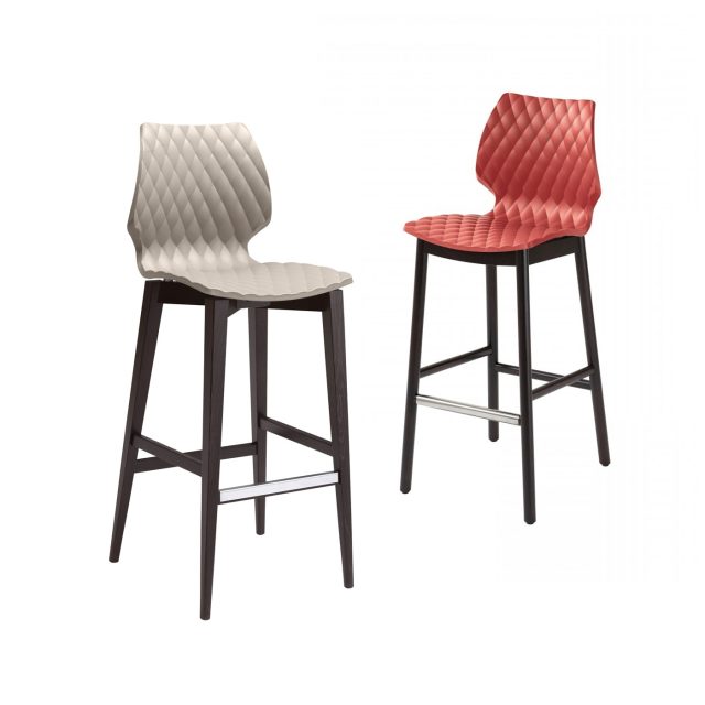 La collezione di sedute Uni concepita da Francesco Geraci è un’icona di et al.: le varianti a sgabello mantengono la scocca in polipropilene con la caratteristica texture, libera o imbottita, qui sostenuta dalle quattro gambe in legno a sezione quadrangolare.